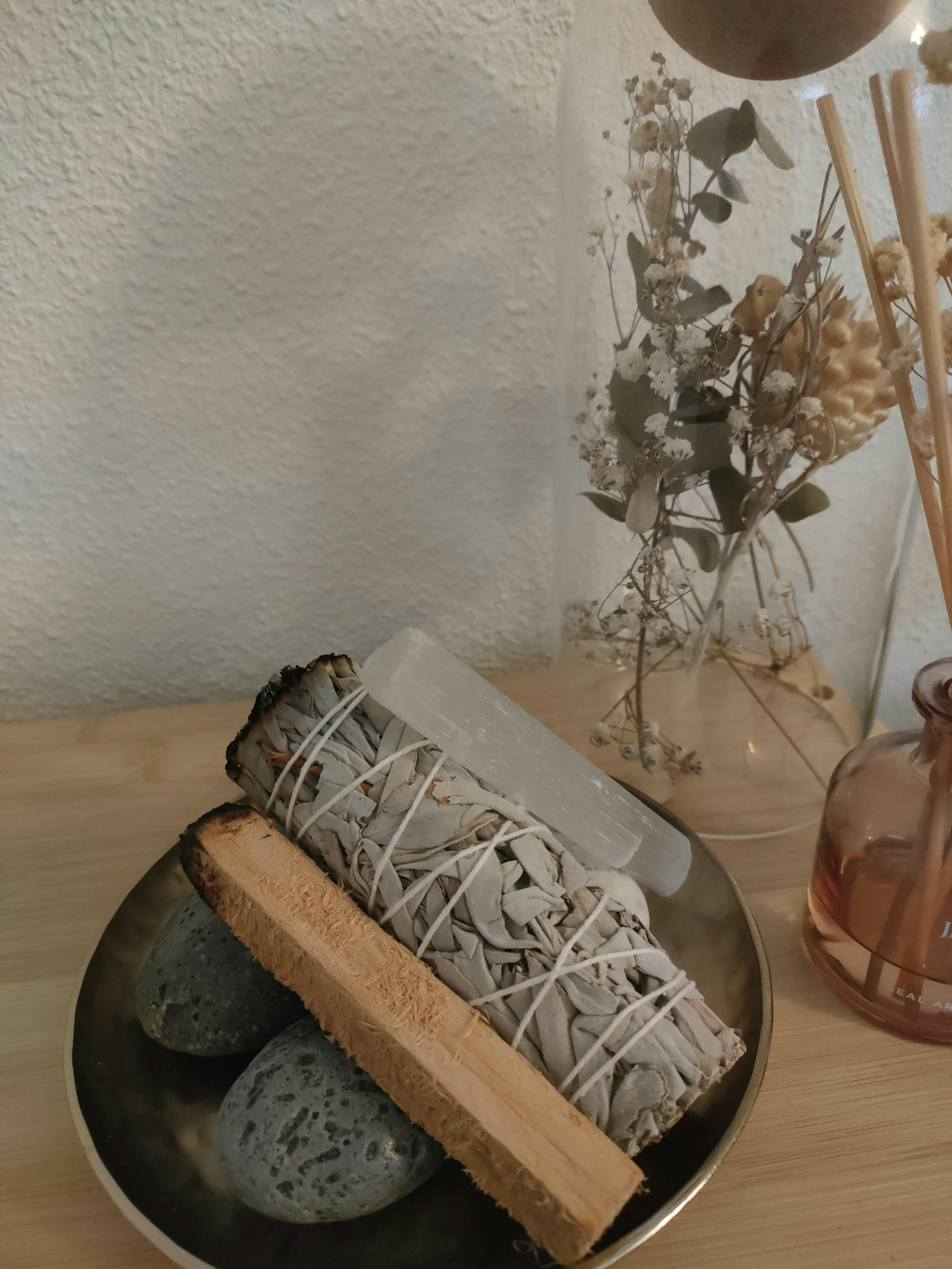 - Salvia Blanca – El humo sagrado que limpia y renueva, eliminando energías negativas y creando un ambiente de paz.